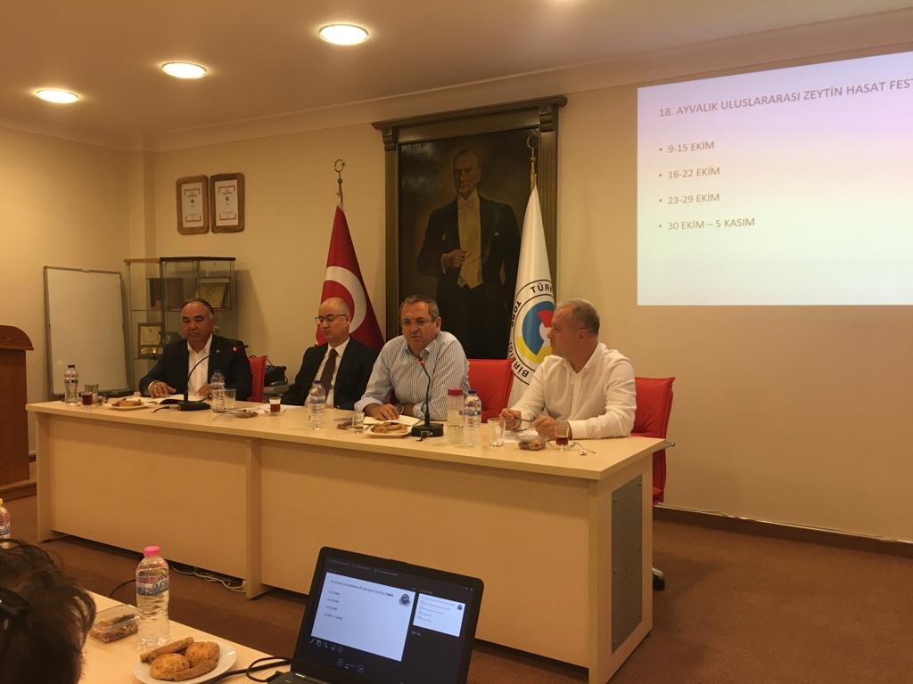 Toplantıya; Ayvalık Kaymakamı Hasan Yaman, Ayvalık Belediye Başkanı Mesut Ergin, Ayvalık Ticaret Odası Başkanı Ali Uçar, ATO yönetim kurulu üyeleri, otel isletmecileri, turizm firmaları, zeytin ve zeytinyağı üreticileri katıldı.