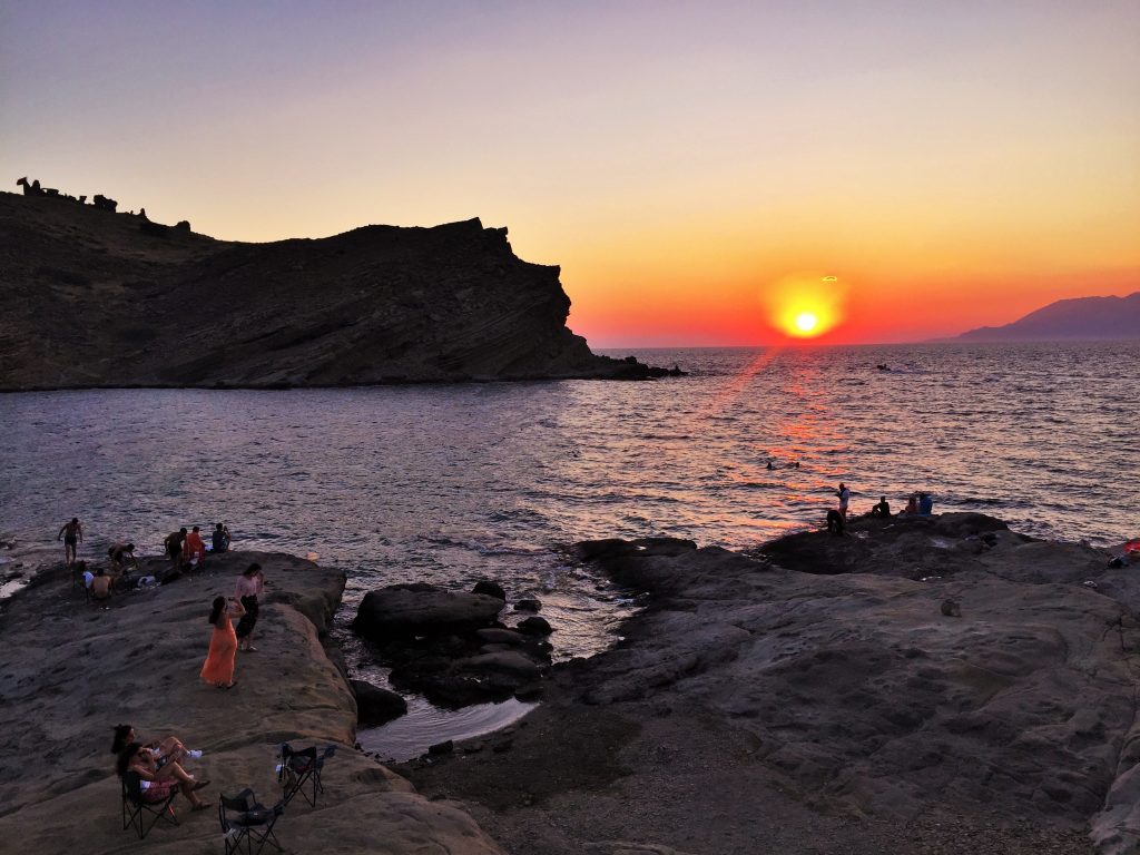 Biz de İmroz’a gittiğimizde Panayia’da o zaman yeni açılmış, köyün adını taşıyan bir otelde çok memnun olarak kaldık. Otelin giriş kapısının önündeki yuvarlak masada mehtaplı bir gecede İmroz’un o üşütmeden esen rüzgarının serinliğinde içtiğimiz, adanın üzümleriyle yapılmış şarabın tadını ise hala damağımda hissediyorum. Otelin iki kardeş sahipleri ile kısa sürede ahbap olduğumuz gibi onların adada yaşayan arkadaşlarıyla da tanışma fırsatımız oldu. Bunlardan biri ise çok Sevgili Neslihan… Bir gün sonra o ve arkadaşı ile Shinudi Köyü’nde geçirdiğimiz gün batımından ise o köyü anlatırken bahsetsem daha iyi olacak sanırım…