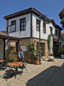 Agios Theodoros Köyü’nde kafeler dışında butik oteller ve tavernalar da var. Bunlardan biri gittiğim zaman tanıştığım burada yaşayan müzik öğretmeni ve İmroz Eğitim ve Kültür Derneği Başkanı Stelyo Berber. Buralı Rumların kültürel kimliğini koruma ve yaşatma konusunda önemli çalışmalar yapıyor. Berber, dedesinin 250 yıllık yel değirmenini restore ederek adanın kültürel mirasını yaşatma yolunda çok önemli bir adım atmış. Restoran olarak hizmet veren mekân, Rum müziklerini ve ailesinden miras kalan Rum yemeklerini ziyaretçilerle buluşturarak adanın geçmişten gelen zenginliğini ve kimliğini günümüzde yaşatmaya çalışıyor. Başarıyor da…
