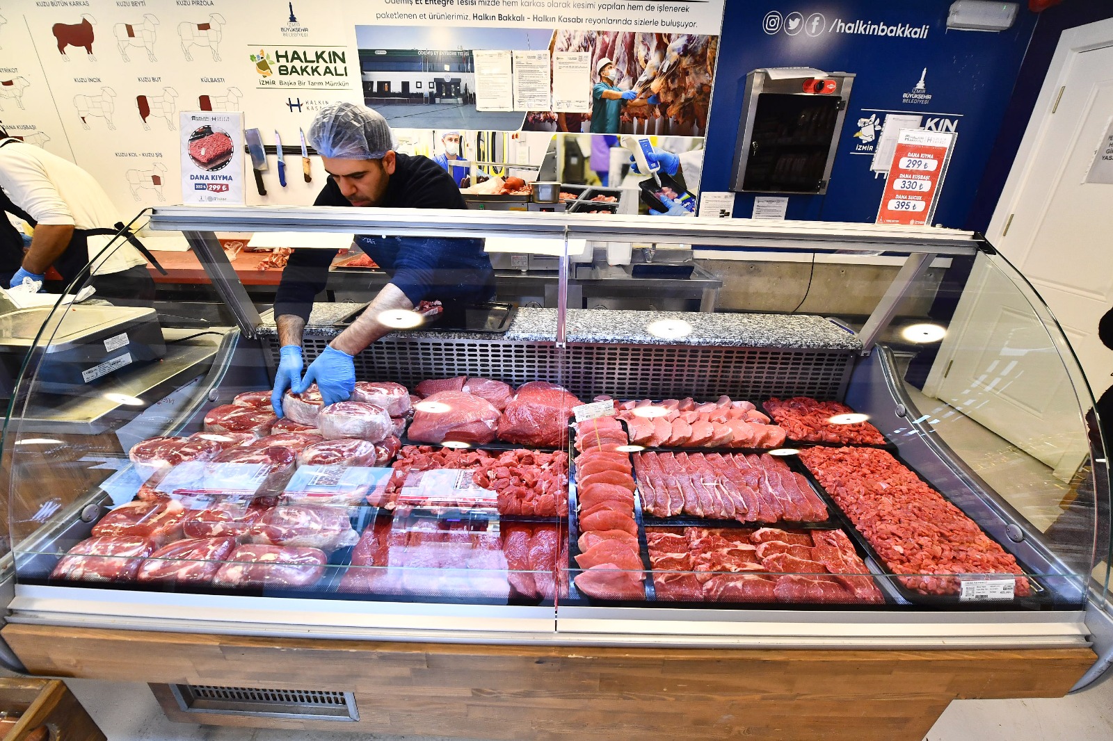 İzmir Büyükşehir Belediye Başkanı Tunç Soyer’in “Başka Bir Tarım Mümkün” vizyonu doğrultusunda doğan ve halka sağlıklı, ucuz ve güvenilir gıda ulaştırmak için hayata geçirilen Halkın Bakkalı/Halkın Kasabı mağazaları, enflasyona karşı vatandaşın sofrasına umut olmaya devam ediyor. İzmir Büyükşehir Belediyesi’nin iştiraki İzTarım A.Ş. tarafından yürütülen çalışmalar kapsamında, tamamen yerli üreticiden alınan besiler, Ödemiş Et Entegre Tesisi’nde karkas et ve İzmirli markalı et ürünleri olarak işleniyor. Hazırlanan et ürünleri, gezici otobüsüyle sayıları 12’ye ulaşan Halkın Bakkalı/Halkın Kasabı mağazalarında uygun fiyat etiketiyle tüketiciyle buluşturuluyor.