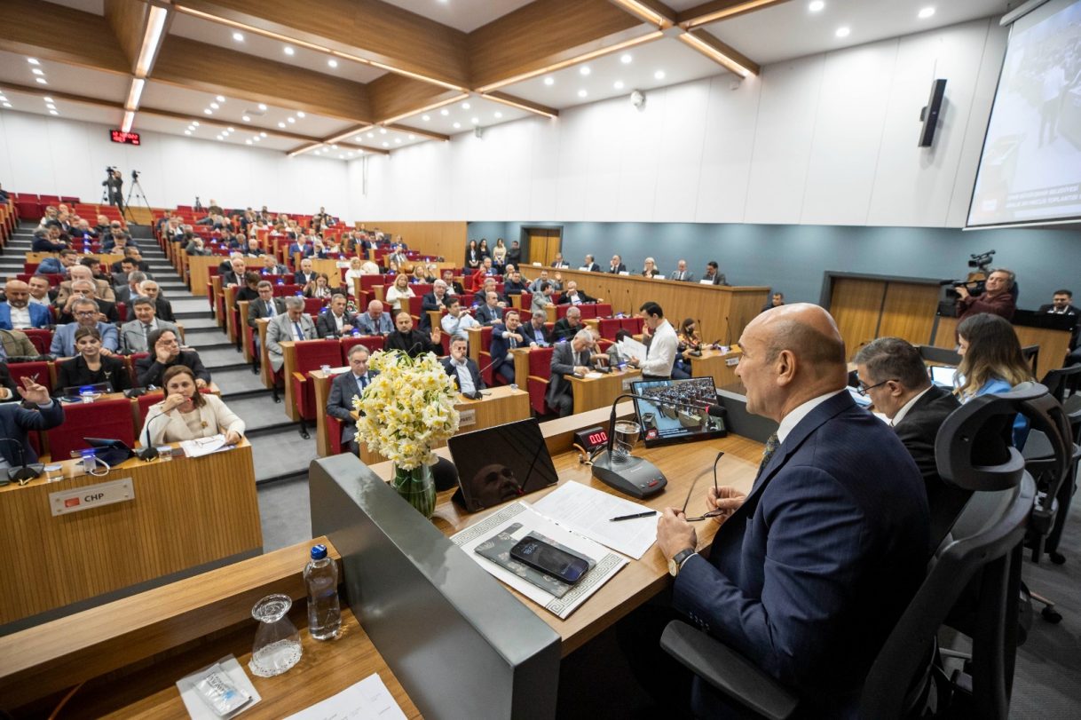 İzmir Büyükşehir Belediyesi’nin Aralık ayı olağan meclis toplantısının ilk birleşimi Başkan Tunç Soyer idaresinde yapıldı. Kültürpark 4 No’lu Hol’deki meclis salonunda düzenlenen oturumda Başkan Soyer, İzmir’in topladığı vergilerden hak ettiği yatırımı alamadığına dikkat çekerek şöyle konuştu: “Maliye Bakanlığı Muhasebat Genel Müdürlüğü Ekim sonunda hangi ilin ne kadar yatırım aldığını yayımladı. Bu kısımla ilgili bir sıkıntı var: Valiliğimizin yaptığı yatırım koordinasyon toplantısının rakamları. İzmir toplam 4 milyar lira yatırım almış. 2,5 milyar liralık yatırımı Büyükşehir Belediyesi yapmış. Gönül ister ki devletimiz daha çok işin içinde olsun, daha çok yatırım yapsın. Bunu kim istemez?” diye konuştu.