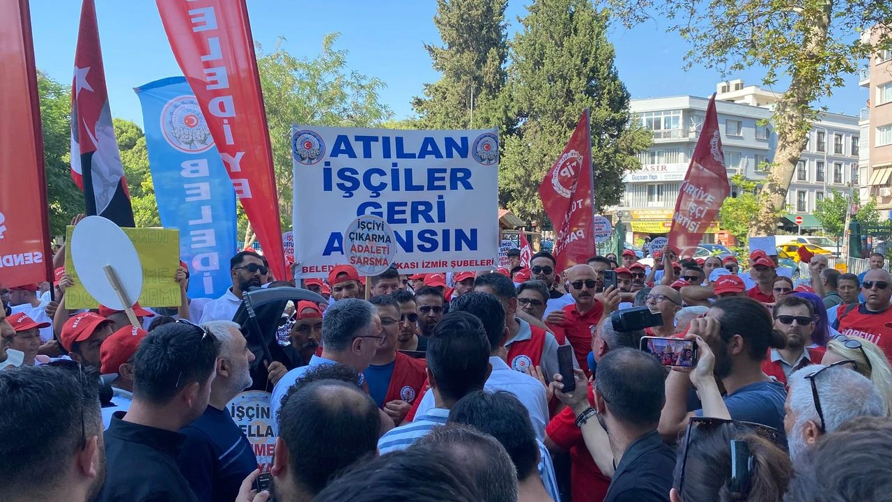 İzmir Büyükşehir Belediyesi’ne bağlı şirketlerden çıkarılan ve Belediye-İş Sendikası’nda örgütlü olan 368 işçi, mücadelelerini sürdürmeye devam ediyor. İşçiler bu kez doğrudan İzmir Büyükşehir Belediye Başkanı Cemil Tugay’ın peşine düştü.