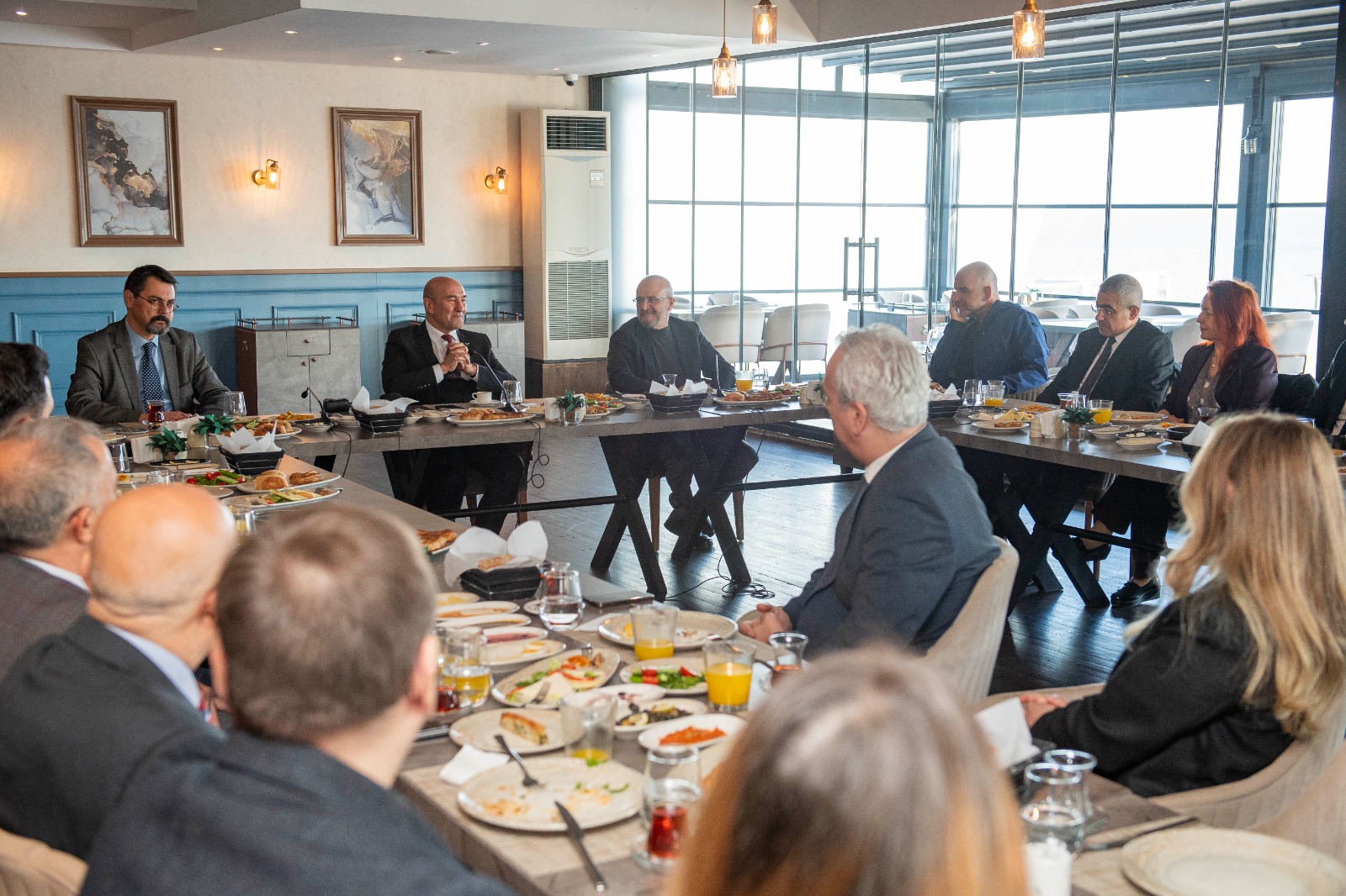 İzmir Büyükşehir Belediye Başkanı Tunç Soyer, İzmir Büyükşehir Belediyesi iştiraklerinin yöneticileriyle buluştu. İzmir Marina’daki Nefes Restoran’da düzenlenen toplantıda Başkan Tunç Soyer, İzmir’in geleceği için çalışan şirket yöneticilerine teşekkür etti. Fark yaratan işler yaptıklarını söyleyen Başkan Soyer, “Sizlerle birlikte İzmir’e hizmet etmek çok büyük bir mutluluk. Türkiye’nin kasvetli ortamında ve sadece popülizmin hakim olduğu bir yerde sadece iyi şeyler yapma gayretiniz bence son derece kıymetli. Hepinize ayrı ayrı teşekkür ediyorum. Çok zor günlerden geçtik. Tam bir sene önce 6 Şubat depremini yaşadık. Ama hep olağanüstü bir gayretle çalıştık. Büyükşehirler, sadece bir deprem bölgesiyle eşleştirilirken biz dört deprem bölgesinde çalışma yürüttük. Konteyner kentler kurduk” diye konuştu.