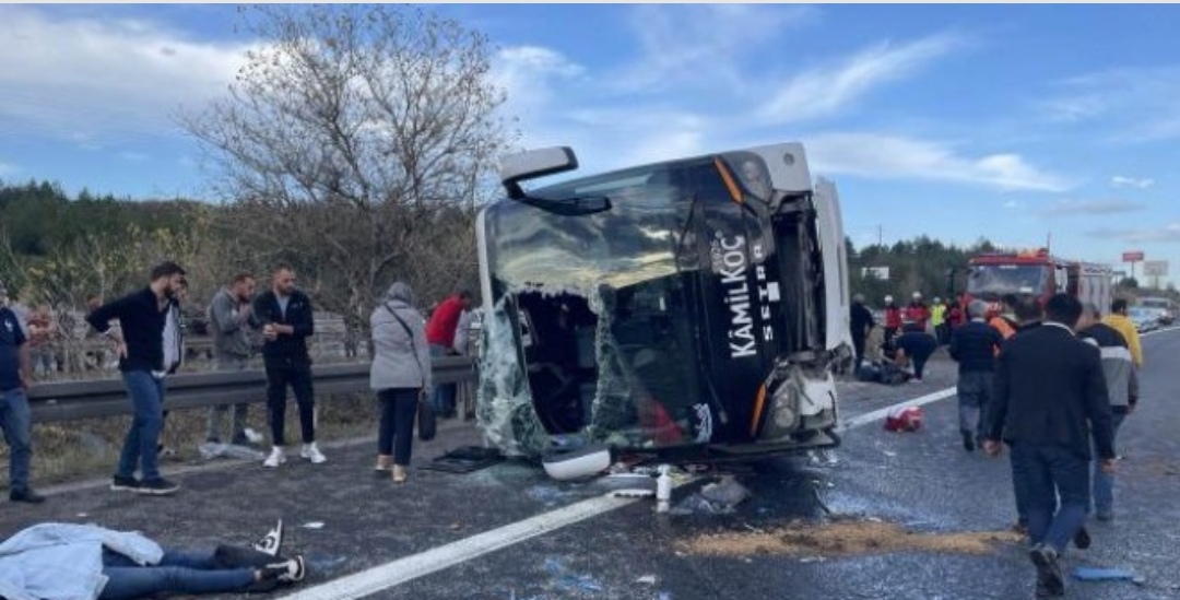 Anadolu Otoyolu’nun Bolu kesiminde yolcu otobüsü devrildi. Kaza sonucu ilk belirlemelere göre çok sayıda yaralı var.