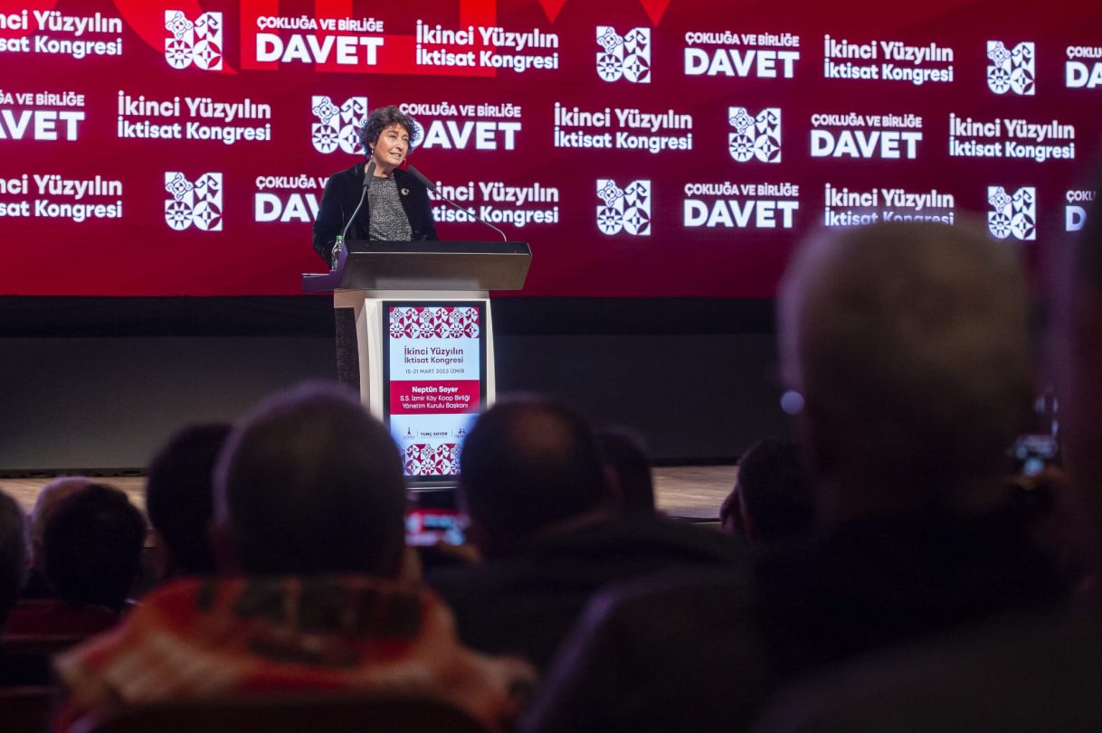 İzmir Büyükşehir Belediyesi tarafından “Yeniliğe Davet” sloganıyla tüm Türkiye’yi geleceği inşa etmeye çağıran İkinci Yüzyılın İktisat Kongresi’nin yedinci ve son günü Yekta Kopan’ın sunumuyla devam etti. Ahmed Adnan Saygun Sanat Merkezi’nde (AASSM) İzmir Büyükşehir Belediye Başkanı Tunç Soyer’in ev sahipliğinde düzenlenen, “Çokluğa ve Birliğe Davet” temasıyla devam eden kongrede S.S. İzmir Köy Koop Birliği Yönetim Kurulu Başkanı Neptün Soyer de konuştu. Neptün Soyer, “Kooperatiflerde Birleşerek Çoğalan Köylünün Örgütlü Gücü” başlığıyla bir sunum yaptı.
