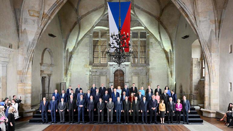 Cumhurbaşkanı Recep Tayyip Erdoğan, Azerbaycan lideri Aliyev ve Ermenistan Başbakanı Paşinyan ile Prag’da bir araya geldi. Zirveye katılan 44 lider zirve kapsamında aile fotoğrafı çektirdi.