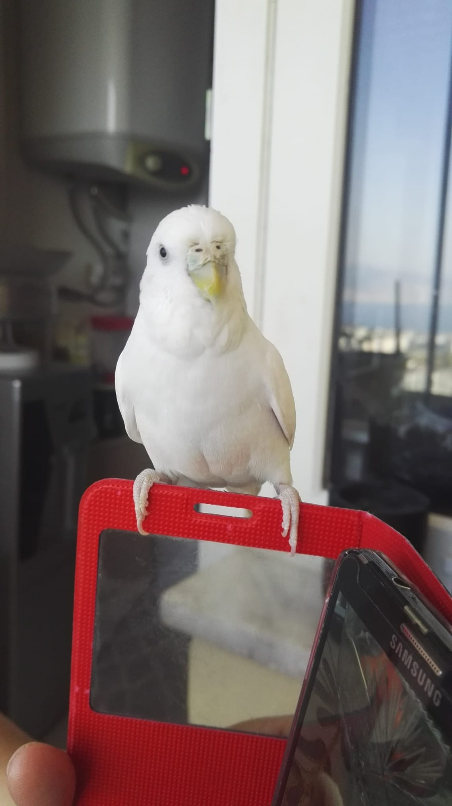Sonunda biz harekete geçtik yemek su , hemen ertesi günü kafes suluk mama kabı oyuncak falan derken bayağı da masraf açmıştı bu davetsiz misafir.. Ama harcadığım her kuruş helal hoş olsun. İlk günden başlayarak bizimle olduğu her gün bizi nasıl mutlu edeceğini biliyordu, dedim ya bu güzel dostumu yalnız bırakmayayım, aynı dili konuşan, aynı kaptan mama yiyen su için bir yoldaş alayım. Kendisine de iyi geleceğini düşündüm . Gittim muhabbet kuşu yetiştiricisine anlattım . Bir yoldaş lazım dedim hem ona hem bize. Albino cinsi bembeyaz tüyleri olan simsiyah gözlü dişi bir muhabbet kuşu aldım. Allahım ne kadar da güzeldi yerinde duramıyordu daha yavruydu küçücüktü. Farkındalık yaratıyordu sanki “ben buradayım size gelmeye hazırım bende sizi sevdim” diyordu.